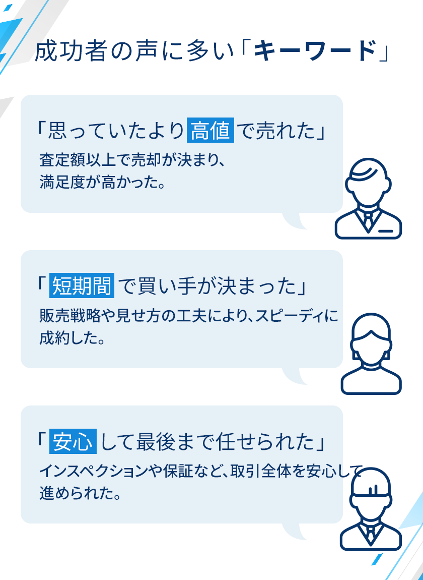 「高値売却の実績」 「早期成約」 「有利な体制」の3つを
