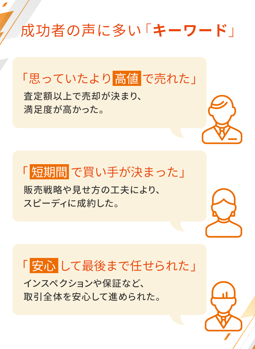 「高値売却の実績」 「早期成約」 「有利な体制」の3つを